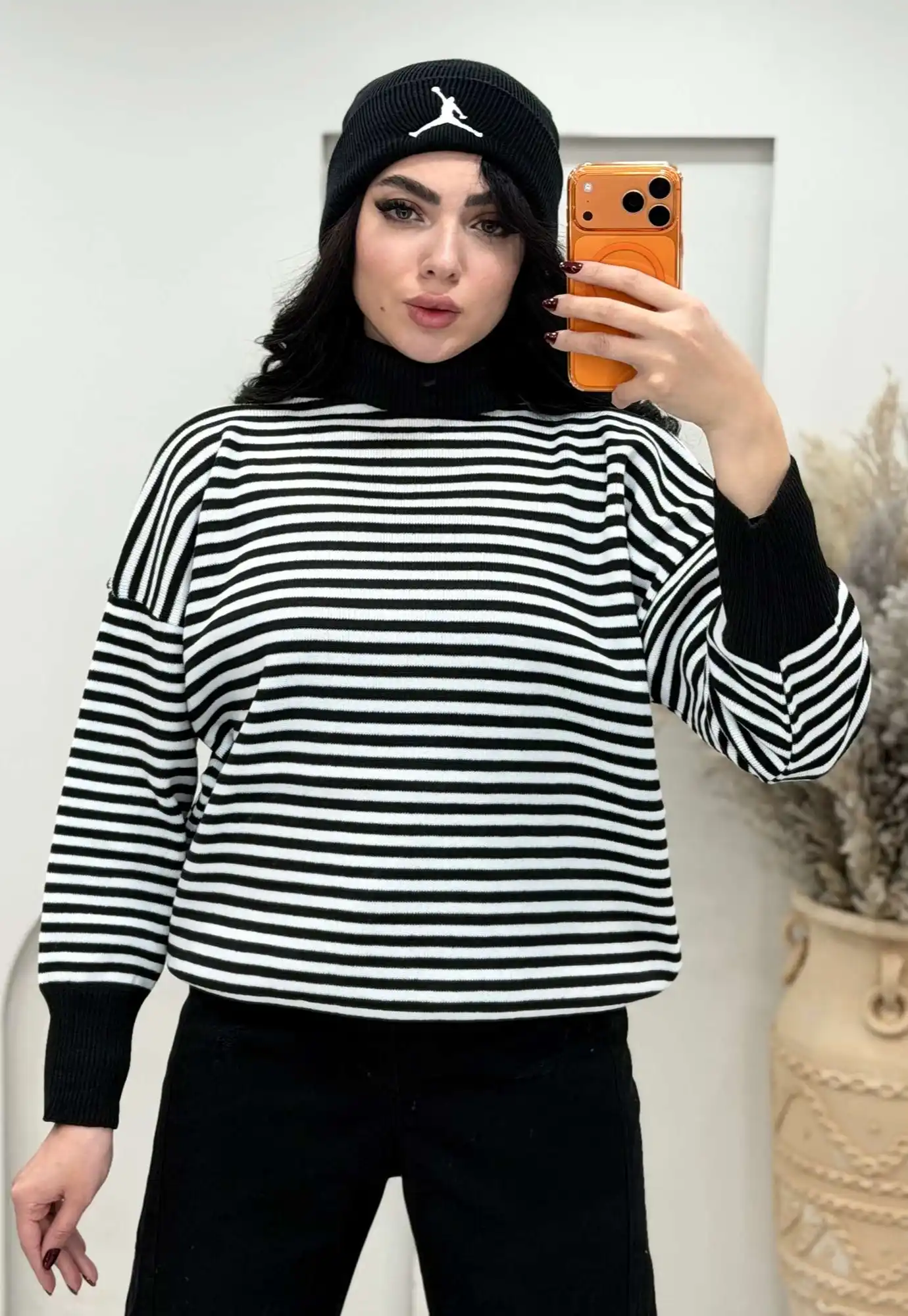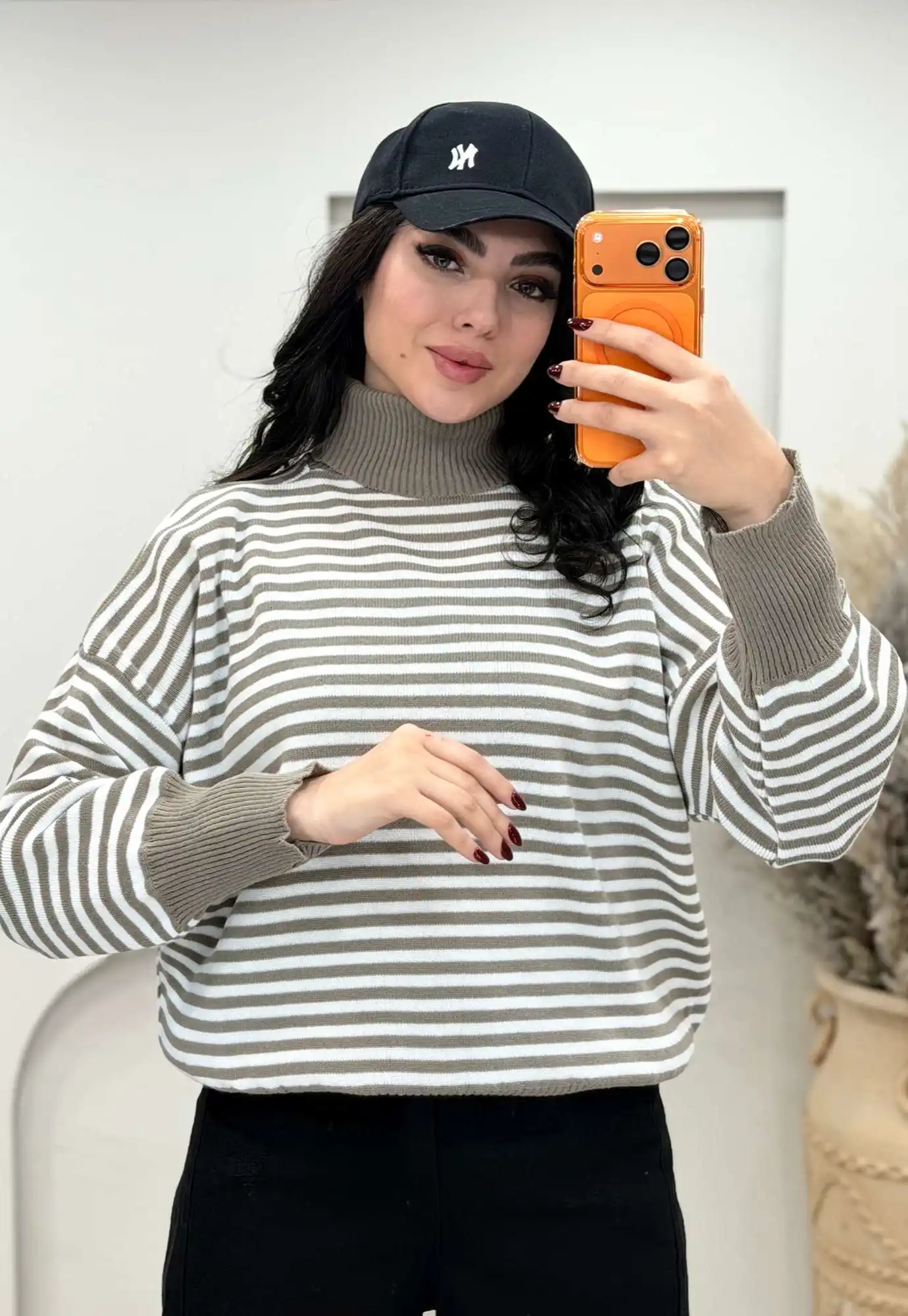 بافت یقه اسکی راهراه بلند با طراحی کلاسیک و پارچه لطیف، انتخابی شیک برای روزهای سرد است. این مدل با فرم کشیده و فیت زیبا، استایل شما را جذابتر میکند. ترکیب رنگهای راهراه آن، جلوهای خاص و مدرن به تیپ زمستانیتان میبخشد.